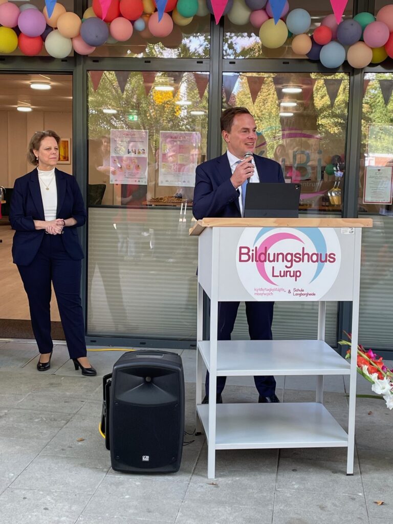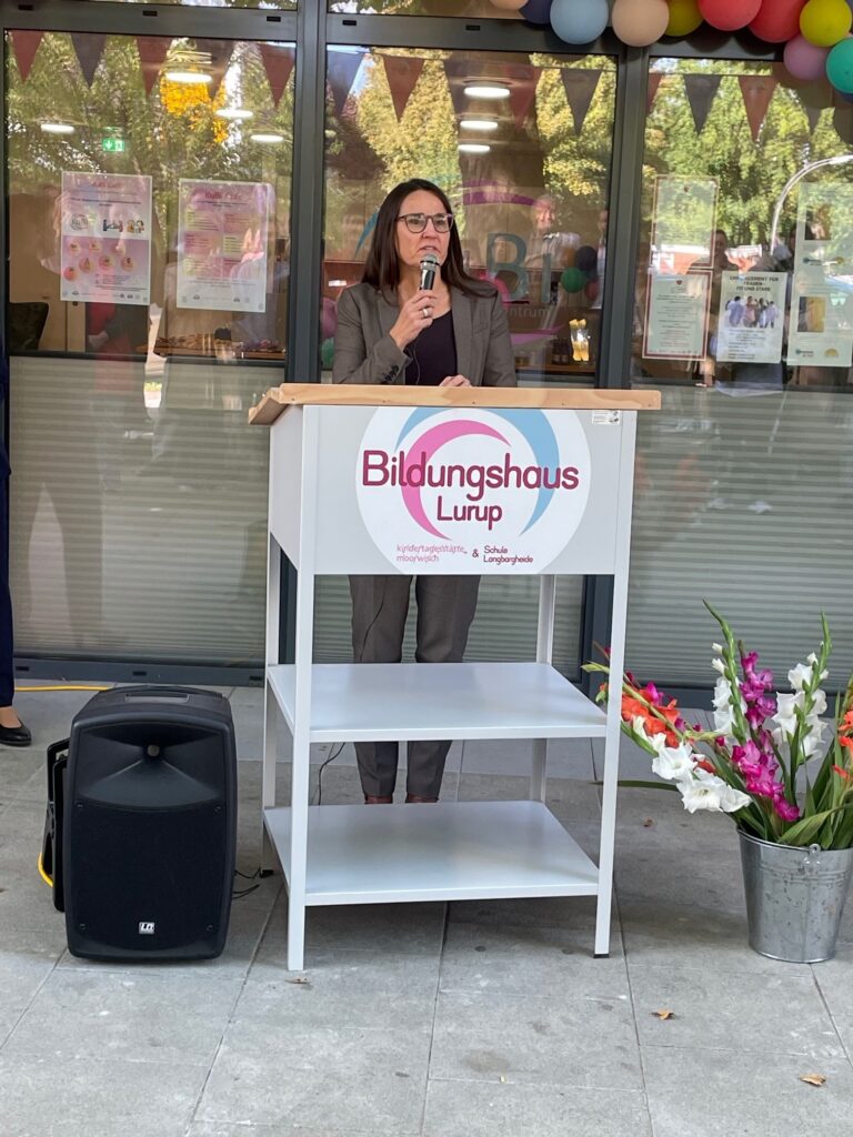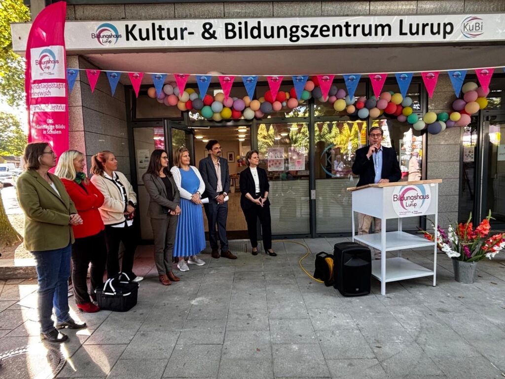 Das Kultur-& Bildungszentrum Lurup (KuBi) feierte am 12.09.2025 seine langersehnte Eröffnung. Unter den Gästen waren u.a. die Senatorin für Stadtentwicklung und Wohnen, Karen Pein, der stellvert. Bezirksamtsleiter Altonas, Christoph Brümmer, die Senatskoordinatorin für die Gleichstellung von Menschen mit Behinderungen, Ulrike Kloiber sowie ein Vorstandsmitglied der Ev. Stiftung Alsterdorf, Herr Tilo von Trott anwesend.
